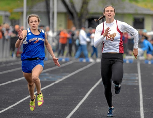 Photo by JOEL TAKARSH/for The Daily Courier, PIC #0561 North Valley's Baylee Touey edges out Hidden Valley in the girls 100 meter run.