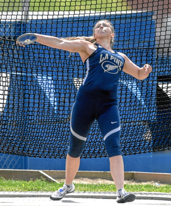 Photo by JOEL TAKARSH/for The Daily Courier, PIC #0483 LaPine's girls discus thrower