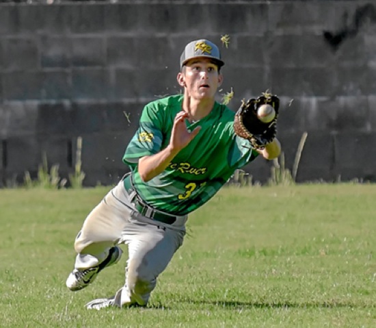 Photo by JOEL TAKARSH/for The Daily Courier, PIC #1585 (7th inning) RR #31 makes diving outfield catch.