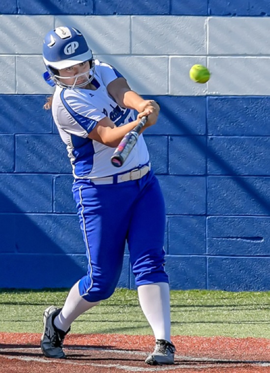 Photo by JOEL TAKARSH/for The Daily Courier, PIC #0731 (2nd inning) GP #12 gets all the bat on this pitch as it goes for a homerun over the left field fence.