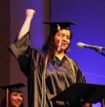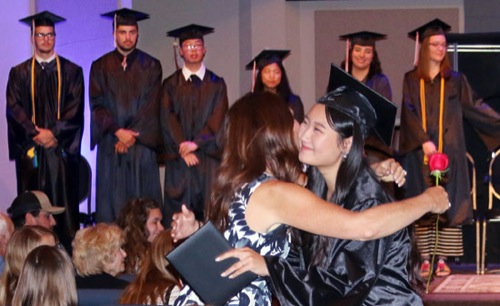 TIMOTHY BULLARD/Daily Courier A New Hope Christian School graduate gets a hug from a family member at River Valley Downtown Church Saturday.