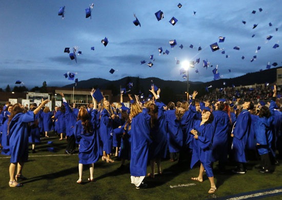About 325 students from the 130th Grants Pass High School graduation celebrated Friday night and did not let intermittent light showers dampen the festivities but it did rain mortarboards at the end of the celebration.