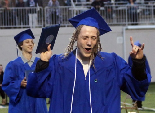Reed Beaumont was one of about 325 students receiving a diploma from the 130th Grants Pass High School graduation Friday night. Intermittent light showers did not dampen the spirits of the grads, family and friends.
