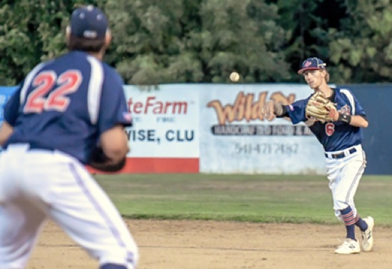 Photo by JOEL TAKARSH/for The Daily Courier, PIC #0293 Nuggets 2nd baseman #6 makes a play to first baseman #22