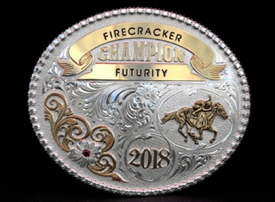 Photo by JOEL TAKARSH/for The Daily Courier, PIC #0013 Firecracker Futurity winner's buckle