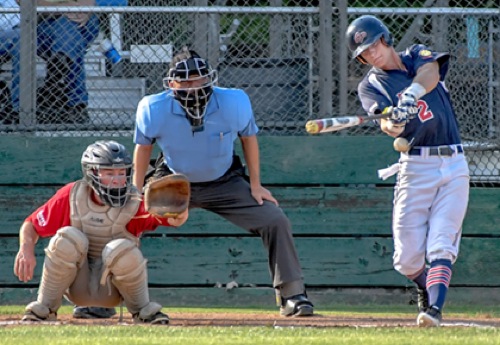Photo by JOEL TAKARSH/for The Daily Courier, PIC #0630 (3rd inning) Nuggets #2 takes this pitch for a single