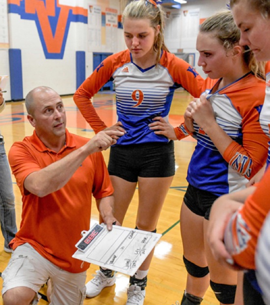 Photo by JOEL TAKARSH/for The Daily Courier, PIC #0879 (L to R) HV new head coach, HV #9, HV #2