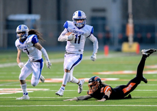 Photo by JOEL TAKARSH/for The Daily Courier, PIC #0039 GP #11 carries the ball and goes in for TD (early 1st quarter)