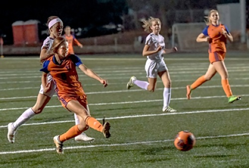 Photo by JOEL TAKARSH/for The Daily Courier, PIC #2126 (L to R) CG #16, HV #8, CG #14, HV #4 Lady Mustangs advance!!