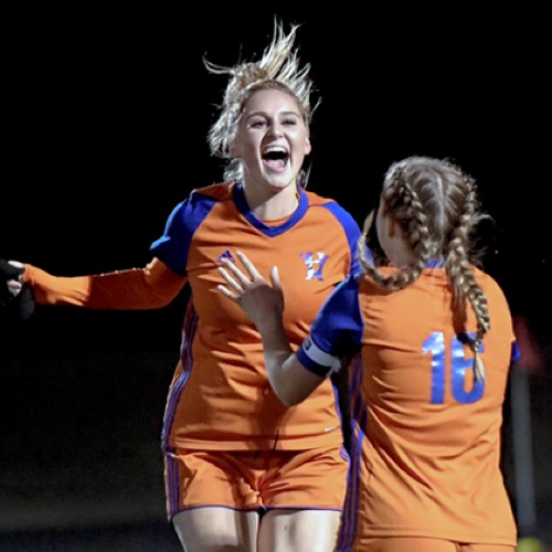 Photo by JOEL TAKARSH/for The Daily Courier, PIC #2288 (L to R) HV #4, HV #16 Lady Mustangs go to State Finals!