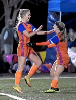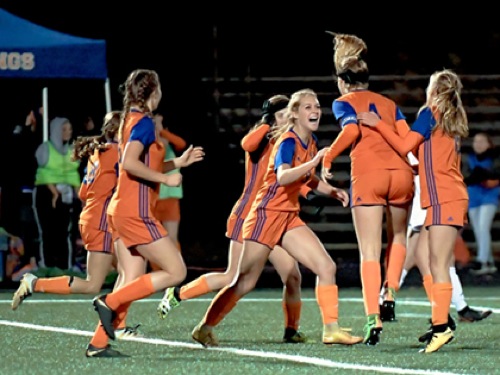 Photo by JOEL TAKARSH/for The Daily Courier, PIC #2146 (L to R) HV #8, HV #16, HV #9, HV #4, HV #15 Lady Mustangs go to State Finals!