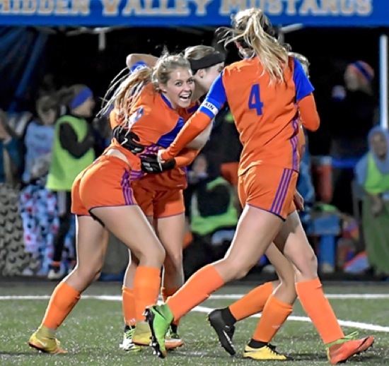Photo by JOEL TAKARSH/for The Daily Courier, PIC #2134 (L to R) HV #9, HV #2, HV #4 Lady Mustangs go to State Finals!