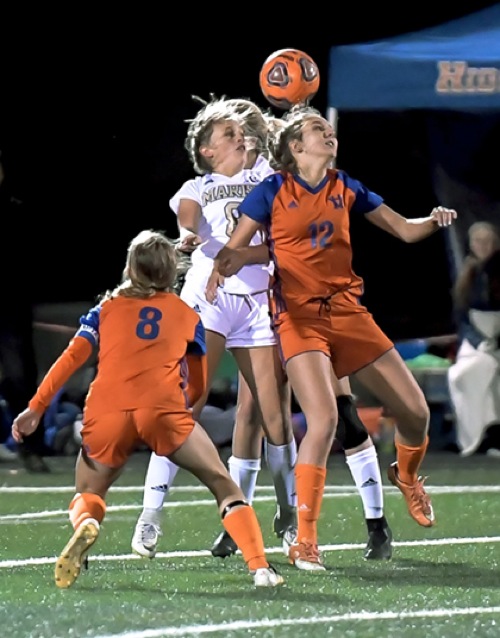 Photo by JOEL TAKARSH/for The Daily Courier, PIC #1751 (L to R) HV #8, MRST #8, HV #12 Lady Mustangs go to State Finals!