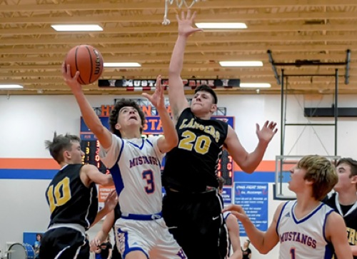 Photo by JOEL TAKARSH/for The Daily Courier, PIC #0704 (L to R) SU #10, HV #3, SU #20, HV #4 Mustangs get the win!