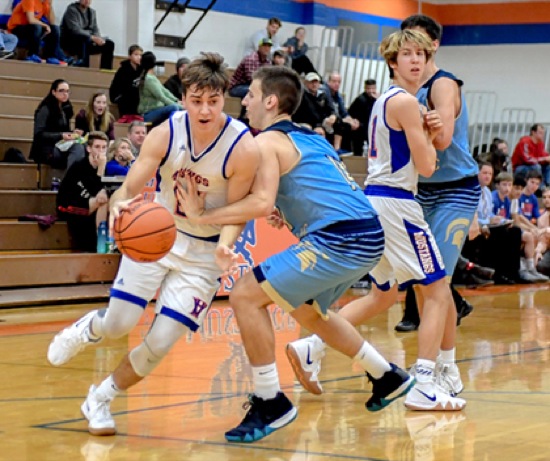 Photo by JOEL TAKARSH/for The Daily Courier, PIC #0415 (L to R) HV #24, MC #14, HV #1, MC #10 Mustangs lose it 66-79.