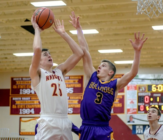 Photo by JOEL TAKARSH/for The Daily Courier, PIC #0062 (L to R) NV #23, BAK #3, NV #3 Knights lose it 56-43.