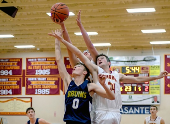 Photo by JOEL TAKARSH/for The Daily Courier, PIC #0092 (L to R) BRK #0, NV #33, NV #24 Knights lose it 59-51