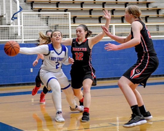 Photo by JOEL TAKARSH/for The Daily Courier, PIC #0594 (L to R) GP #2, CAM #12, CAM #22 Lady Cavers lose a tough one in OT