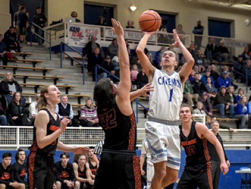 Photo by JOEL TAKARSH/for The Daily Courier, PIC #0203 (L to R) RB #12, RB #42, GP #1, RB #10 Cavemen win it 52-46!