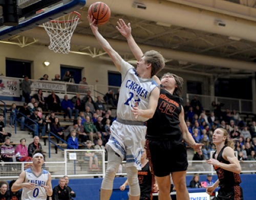 Photo by JOEL TAKARSH/for The Daily Courier, PIC #0019 (L to R) GP #0, GP #23, RB #42, RB #12 Cavemen win it 52-46!