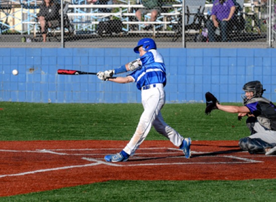 Photo by JOEL TAKARSH/for The Daily Courier, PIC #0648 (7th inning) GP #10 delivers the game winning hit Cavemen win a nail-biter 8-7 !