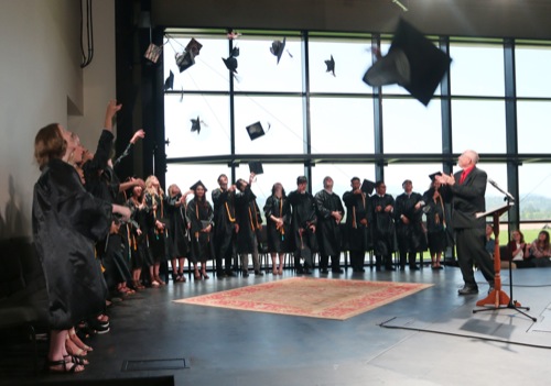 TIMOTHY BULLARD/Daily Courier Upon being proclaimed graduated, New Hope students tossed their mortarboards into the air Saturday.
