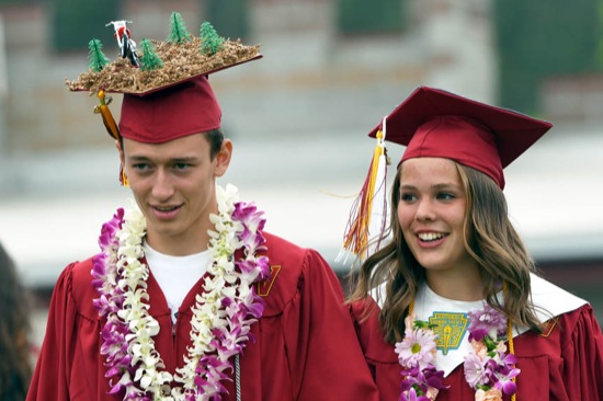 SCOTT STODDARD/Daily Courier Joshua Rau (left) and Isabelle Kirkland at the 2019 North Valley High School graduation ceremony Wednesday evening.