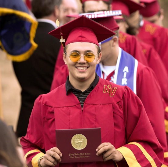 SCOTT STODDARD/Daily Courier Isaac Goodpasture at the 2019 North Valley High School graduation ceremony Wednesday evening.