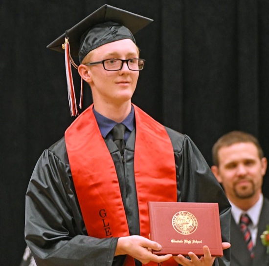 SCOTT STODDARD/Daily Courier Senior class president Nathanael Young at the Glendale High School graduation ceremony Friday evening.