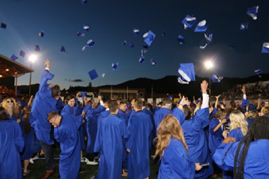 TIMOTHY BULLARD/Daily Courier Over 350 students were graduated from Grants Pass High School on Friday and filled the air with mortar boards at the end of the ceremony.