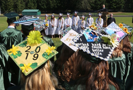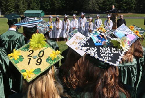 Some people where use electronic social media to get their message out but several Rogue River High School graduates like Jenny Dirk (left) and Kasidee Davis (right)used their mortarboards Saturday.