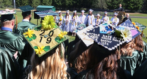 Some people where use electronic social media to get their message out but several Rogue River High School graduates like Jenny Dirk (left) and Kasidee Davis (right)used their mortarboards Saturday.