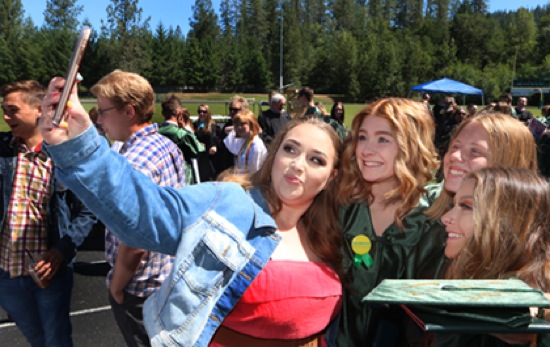 Getting the selfie group shot at the Rogue River High School graduation Saturday is Venus Moody with (from left) daughter Destiny Rangel, Jesse Langfield and Jillian Steinbrook-Cory.