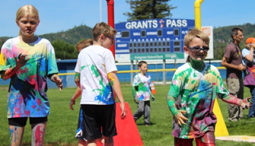 Some 200 kids participated in Saturdays Hue-Man race where colorists sprayed them with paint of various colors.