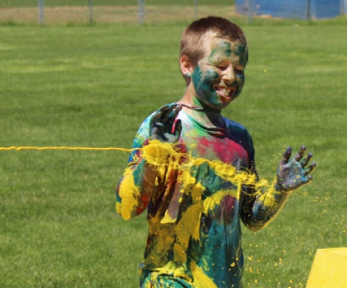 A participant in Saturdays Hue-Man race gets another shot of color as he makes a pass through the paint area.