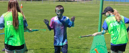 CASEY CROWLEY/Daily Courier A participant in Saturdays Hue-Man race seems to be saying, "I give up," as he makes another pass through the paint area.