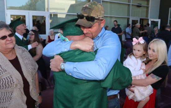 Brice S. shares a tear-soaked embrace with his father, Bill Swanson, step-mother Keisha Swanson, and sister Gracie, 4. Bill hadn't seen Brice for years before Thursday when the family, including grandmother Susan Cahill, arrived from Nebraska to attend the event.