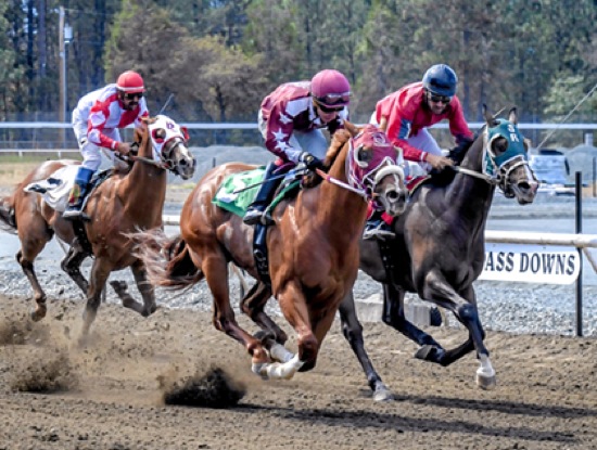 Photo by JOEL TAKARSH/for The Daily Courier, PIC #0458 RACE #7 (5-1-4 finish) Winner #5(foreground)