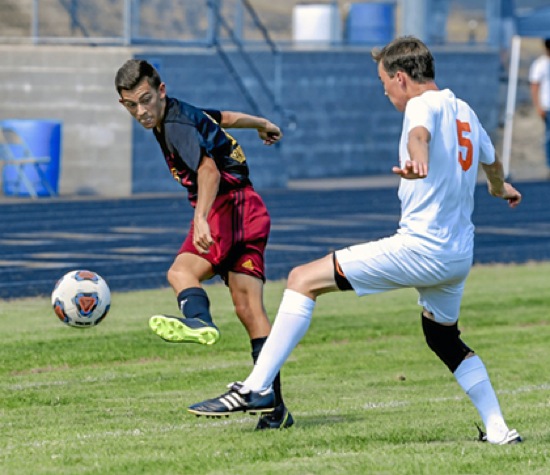 Photo by JOEL TAKARSH/for The Daily Courier, PIC #1912 (L to R) NV #15, MOL #5 Knights win it 1-0 !