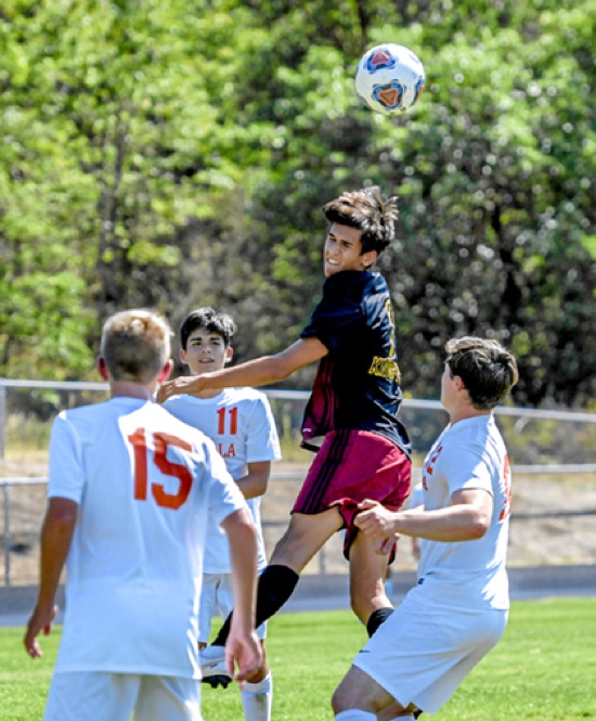 Photo by JOEL TAKARSH/for The Daily Courier, PIC #1319 (L to R) MOL #15, MOL #11, NV #11, MOL #12 Knights win it 1-0 !