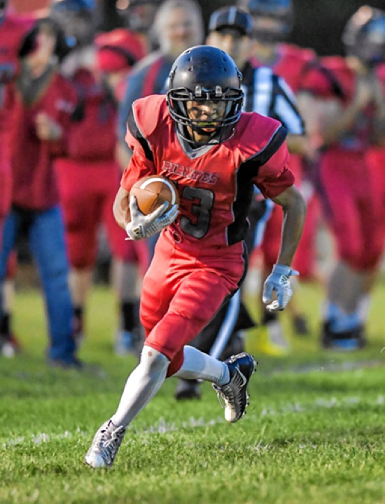 Photo by JOEL TAKARSH/for The Daily Courier, PIC #0246 Glendale #13 had TWO catch and runs both for TD's. Glendale wins big...64-16.