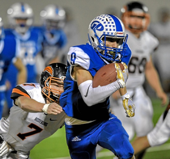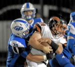 Photo by JOEL TAKARSH/for The Daily Courier, PIC #0626 (L to R) RB #7, GP #9 Cavemen win it 42-21 !!