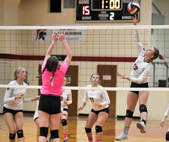 Photo by JOEL TAKARSH/for The Daily Courier, PIC #0112 (L to R) NH #6, GLND #1, NH #11, NH #12 New Hope wins in 3 straight sets!