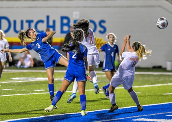 Photo by JOEL TAKARSH/for The Daily Courier Pic #0451 GP #3 kicks the ball past RSB goalie #00 for GP's 3rd goal Lady Cavers win it 3-1 !