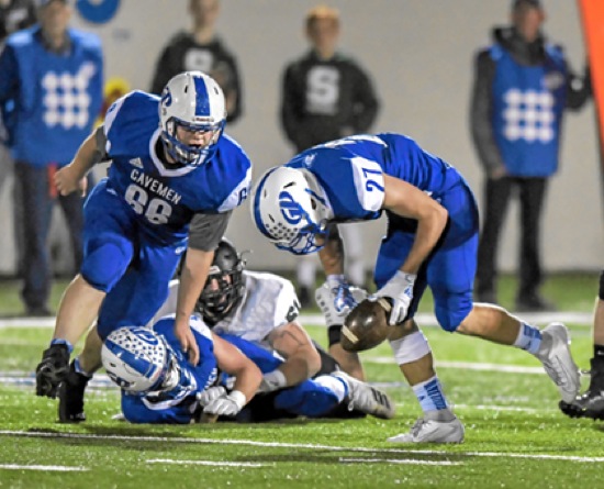 Photo by JOEL TAKARSH/for The Daily Courier PIC #0123 (1st quarter) GP #27 picks up a Sheldon fumble