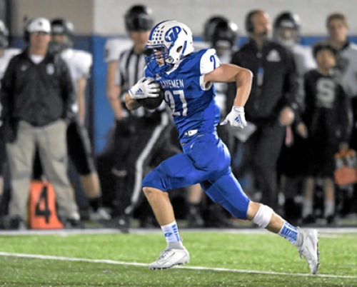 Photo by JOEL TAKARSH/for The Daily Courier PIC #0142 runs it down the sideline for GP's first TD
