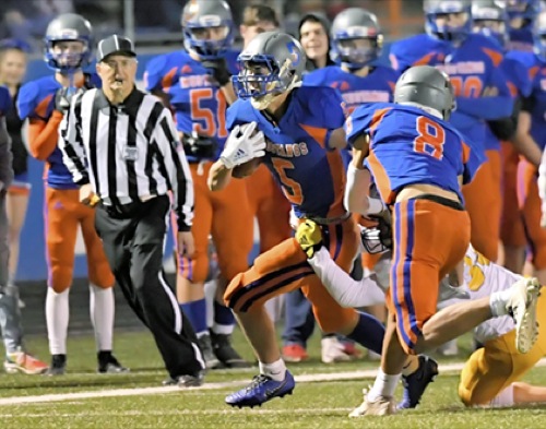 Photo by JOEL TAKARSH/for The Daily Courier PIC #0550 HV #5 carries the ball Mustangs win big 40-12 !!