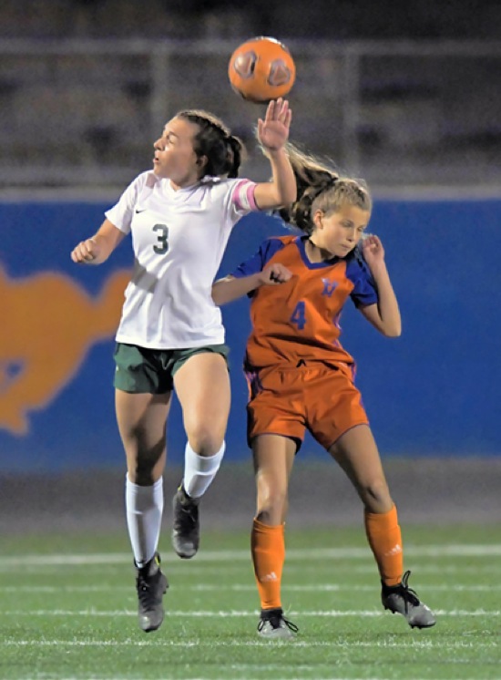 Photo by JOEL TAKARSH/for The Daily Courier PIC #0566 (L to R) NM #3, HV #4 Mustangs fall to North Marion 2-0