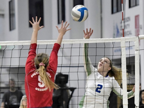 Photo by JOEL TAKARSH/for The Daily Courier PIC #0075 (L to R) SWO #5, RCC #2 RCC wins in 3 straight sets!