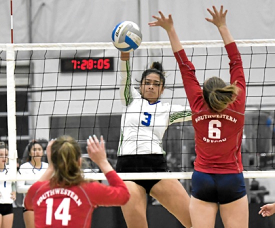 Photo by JOEL TAKARSH/for The Daily Courier PIC #0382 (L to R) SWO #14, RCC #3, SWO #6 RCC wins in 3 straight sets!